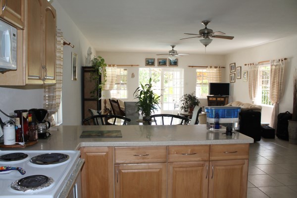 A tastefully finished 3 bedroom, 2.5 bathroom property located in a good established neighbourhood. A sizable sheltered patio overlooks the nearby 18 x 12 swimming pool and deck and ample parking area. This patio leads inside to a huge open plan living and dining area with ceiling fans, and flows nicely to a very open kitchen with a breakfast bar. There is a nearby laundry area, powder room and useful storage room as well as an access to the back of the property. Upstairs all bedrooms have built-in cupboards and ceiling fans. The master bedroom is approximately 15 x 13 with a private and breezy sheltered patio and an en suite bathroom with a double vanity and a bathtub. This bedroom has a built-in work station area that also could be utilized for additional cupboard space. The other two bedrooms are about 11 x 11 and 15 x 11 respectively, with the smaller bedroom already having an a/c, and these two bedrooms share a bathroom with a bathtub. The property is nicely enhanced with window screens and security grills throughout, while all bedrooms and the living area are plumbed for a/c. Sheraton Mall, south coast beaches and numerous other amenities are very close by!